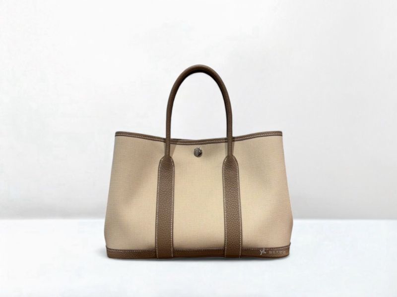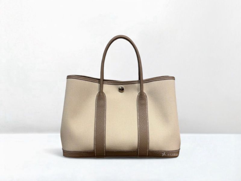 A12895 HERMES包包 Garden Party 8L冰川灰帆布/18大象灰牛皮30cm花園包 (台北大安店)