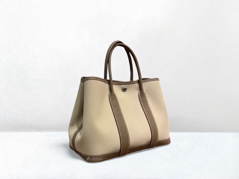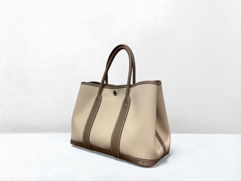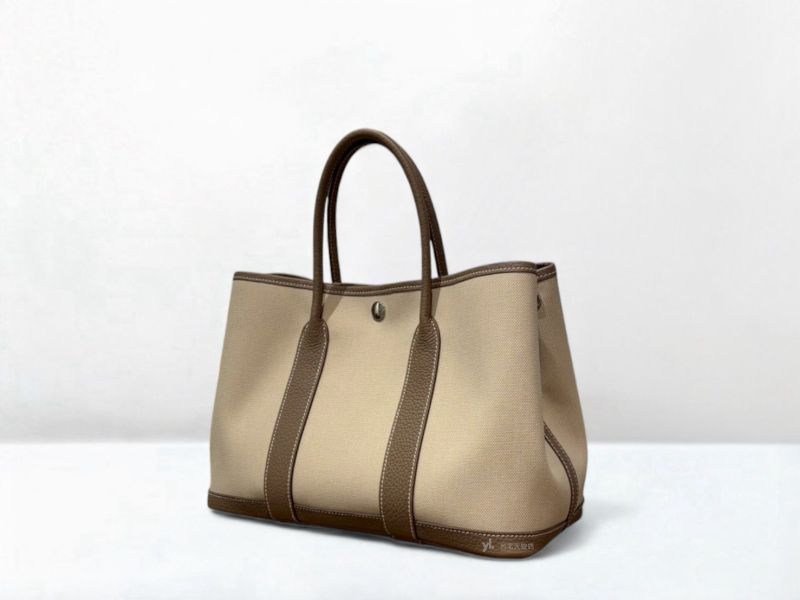 路徑: 首頁 / 商品 / BRAND / Hermes / A12895 HERMES包包 Garden Party 8L冰川灰帆布/18大象灰牛皮30cm花園包 (台北大安店)...