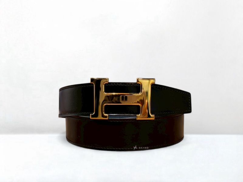 A12901 HERMES皮帶 Constance H金釦/黑box/普魯士藍togo皮雙面皮帶 (台北大安店)