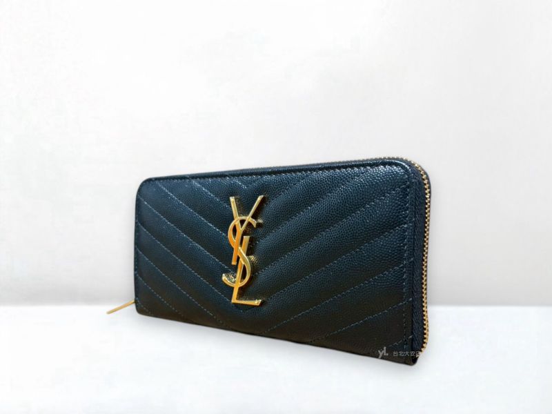 A12934 YSL皮夾 黑金粒紋牛皮山形紋ㄇ拉長夾 358094 (台北大安店)