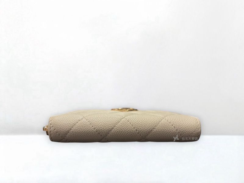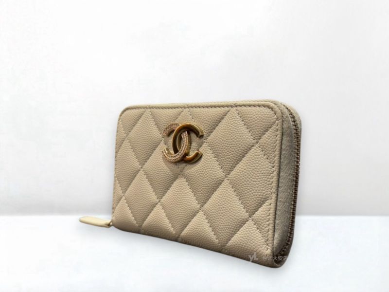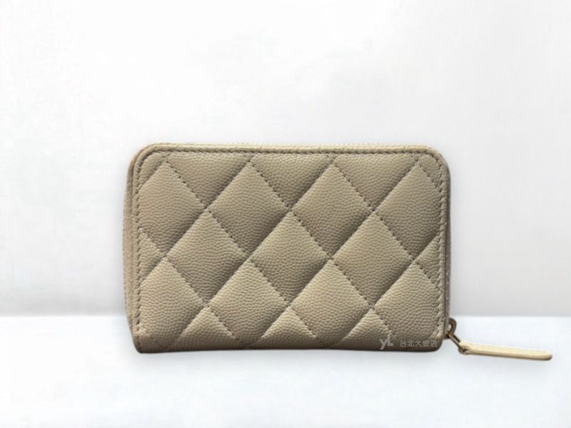 路徑: 首頁 / 商品 / BRAND / Chanel / A12967 CHANEL卡包 淺灰色荔枝牛皮雙C淡金釦拼鑽拉鍊錢包AP4177 (台北大安店)...