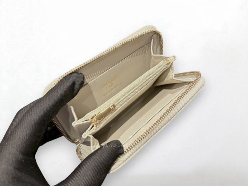 A12967 CHANEL卡包 淺灰色荔枝牛皮雙C淡金釦拼鑽拉鍊錢包AP4177 (台北大安店)