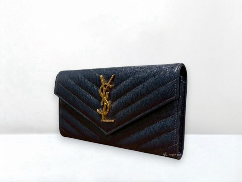 路徑: 首頁 / 商品 / BRAND / YSL / A12973 YSL皮夾 深藍金釦山形紋荔紋牛皮信封長夾372264 (台北大安店)...