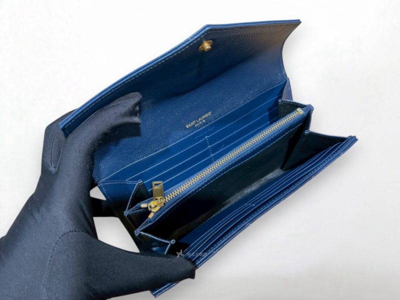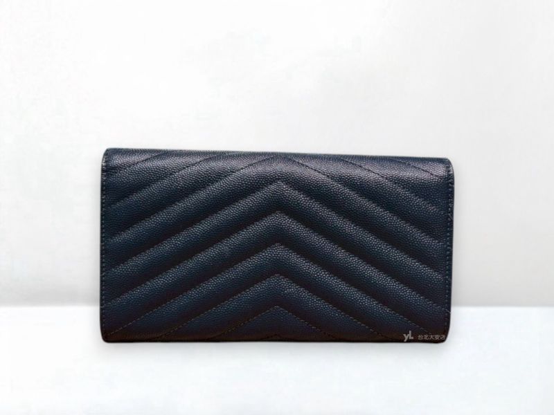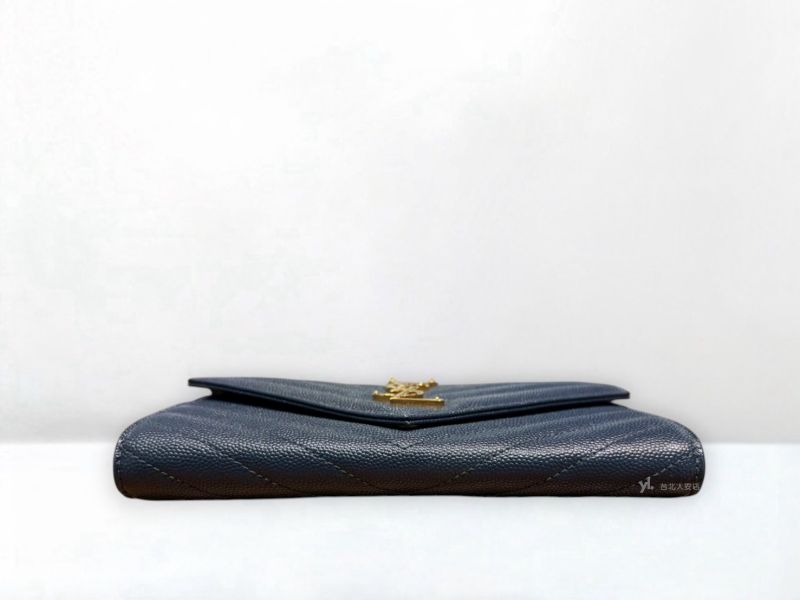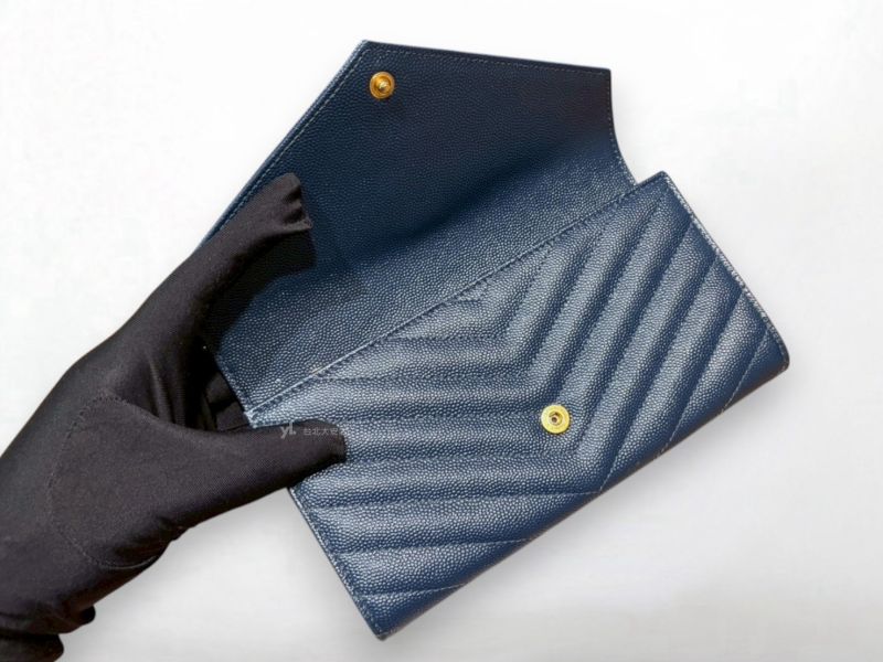 A12973 YSL皮夾 深藍金釦山形紋荔紋牛皮信封長夾372264 (台北大安店)