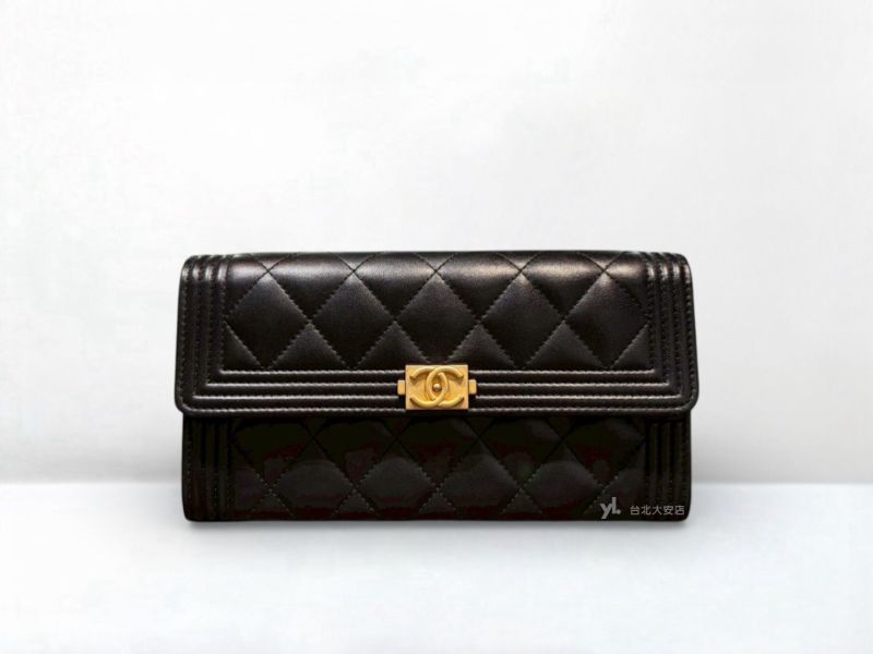 A13032 CHANEL皮夾 BOY 黑色羊皮復古金釦下蓋長夾A80286 (台北... S5309 CHANEL包包 黑羊皮金釦水鑽手把口蓋包AS4925 (板橋府中...