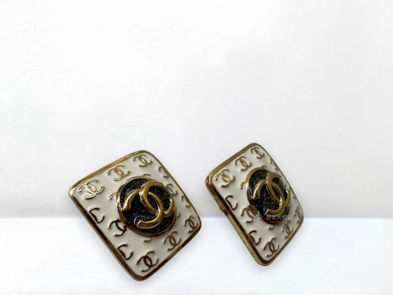 A13050 CHANEL耳環 方形白底圓形黑底雙C耳環 (台北大安店)