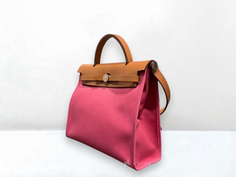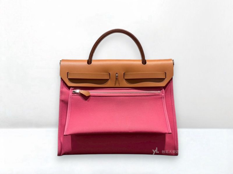路徑: 首頁 / 商品 / BRAND / Hermes / A13081 HERMES包包 Herbag 31桃粉帆布銀釦外逢手提肩背包 (台北大安店)...