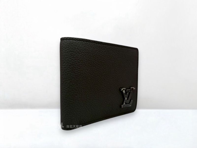 A13110 LV皮夾 Multiple 消光黑粒面牛皮字母霧黑釦對開短夾M69829 (台北大安店)