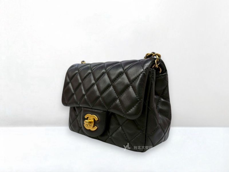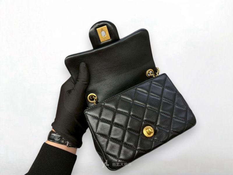 路徑: 首頁 / 商品 / BRAND / Chanel / A13116 CHANEL包包 黑色羊皮金球方胖子口蓋包AS1786 (台北大安店)...