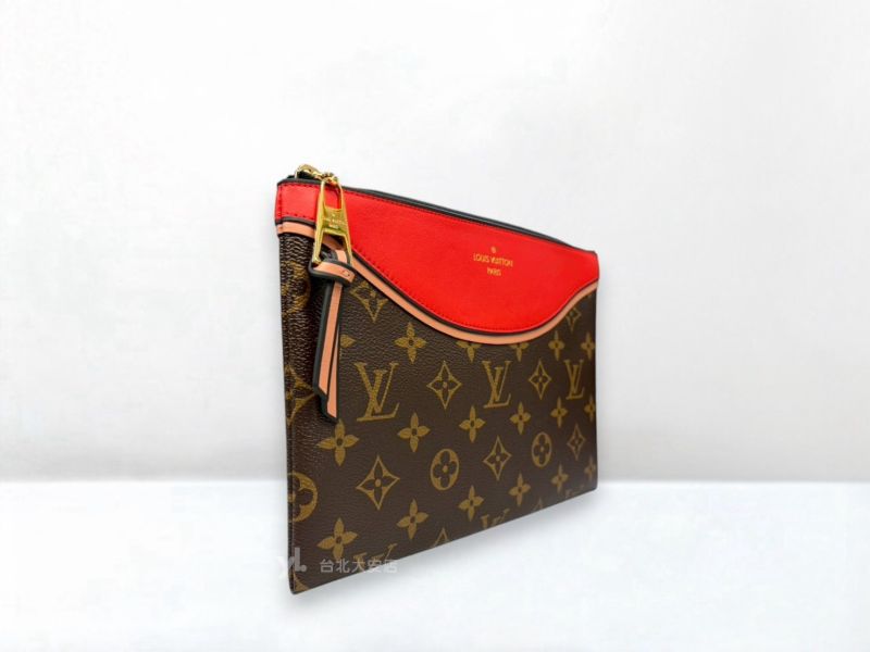 路徑: 首頁 / 商品 / BRAND / LV / A13130 LV包包 POCHETTE TUILERIES 老花/紅皮粉邊拉鍊手拿包M63903 (台北大安店)...