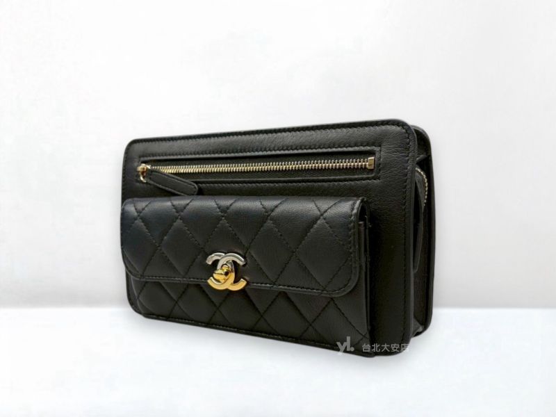 路徑: 首頁 / 商品 / BRAND / Chanel / A13134 CHANEL手拿包 黑色羊皮金銀雙色釦手拿隨身包AP0171 (台北大安店)...