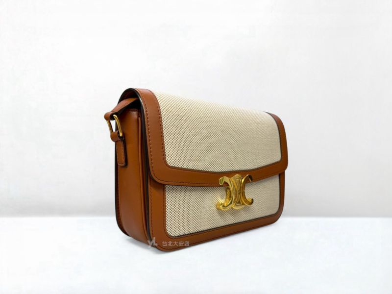 A13147 CELINE包包 TRIOMPHE焦糖色牛皮/帆布凱旋門金釦肩背包191242EGC.02NT (台北大安店)