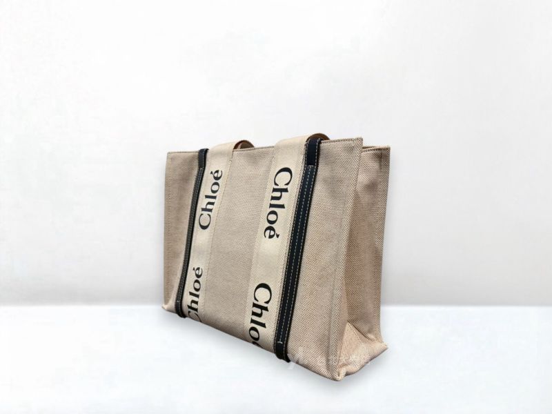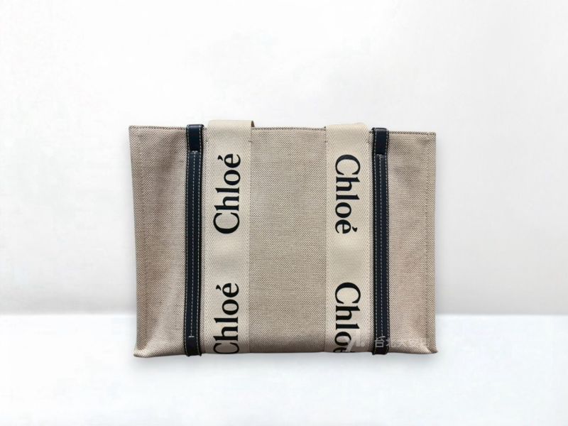 A13148 CHLOE包包 WOODY 藍色牛皮/亞麻帆布大號托特包CHC22AS383I2691J (台北大安店)