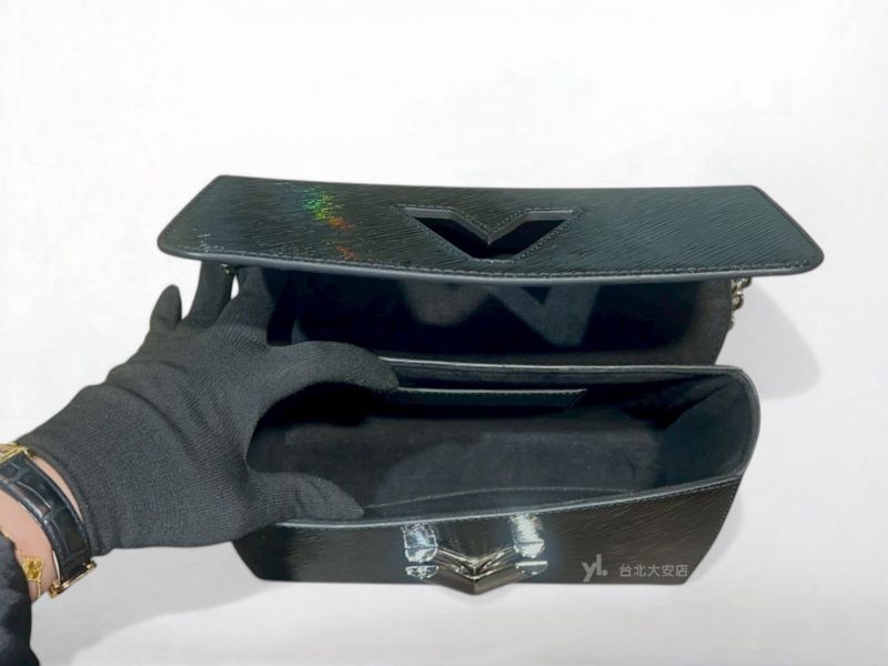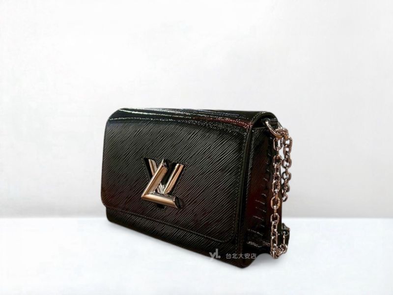 A13151 LV包包 Twist MM黑色漆亮片銀色轉釦下蓋包 (台北大安店)