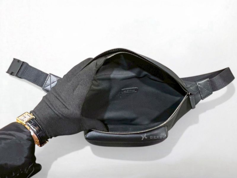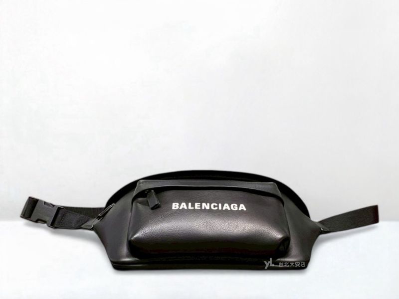 A13154 Balenciaga包包 黑色牛皮白字LOGO 胸口腰包552375 (台北大安店)