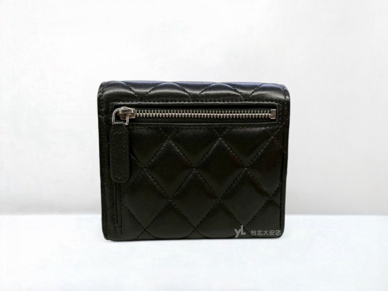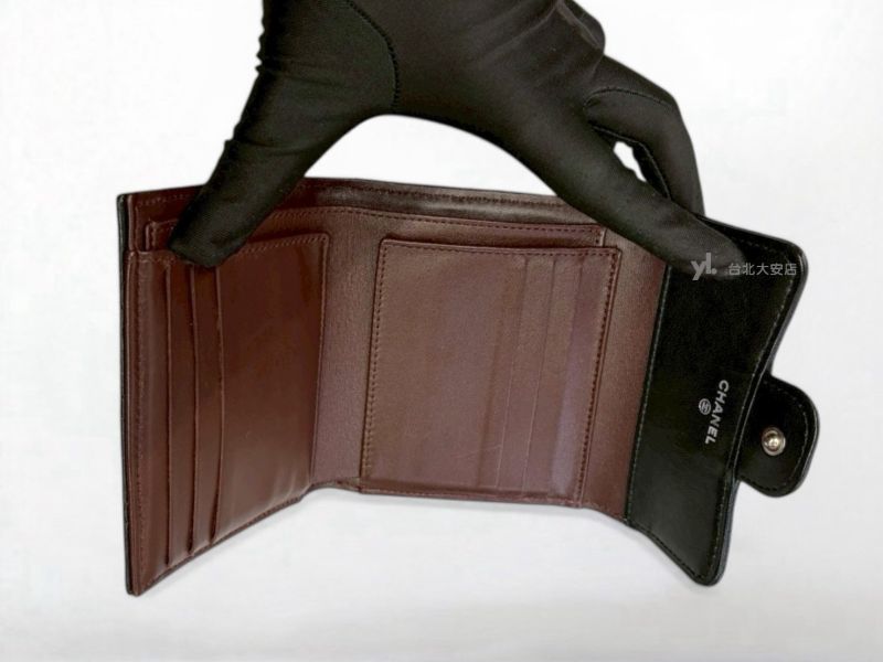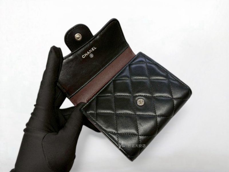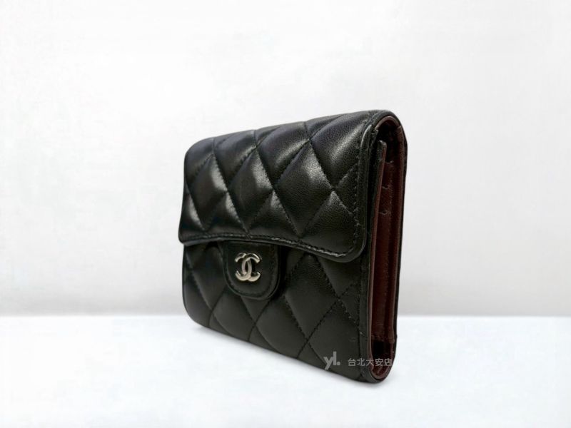 A13159 CHANEL皮夾 黑色羊皮銀釦三折短夾AP0231 (台北大安店)