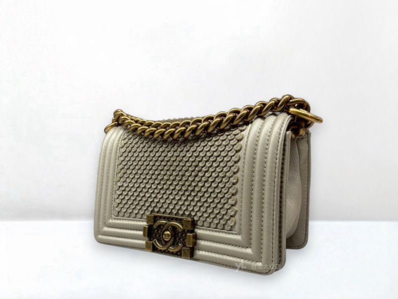 路徑: 首頁 / 商品 / BRAND / Chanel / A8120 CHANEL包包 Boy金屬灰小羊皮復刻金鍊皮辮設計20cm包A92699 (台北大安店)...