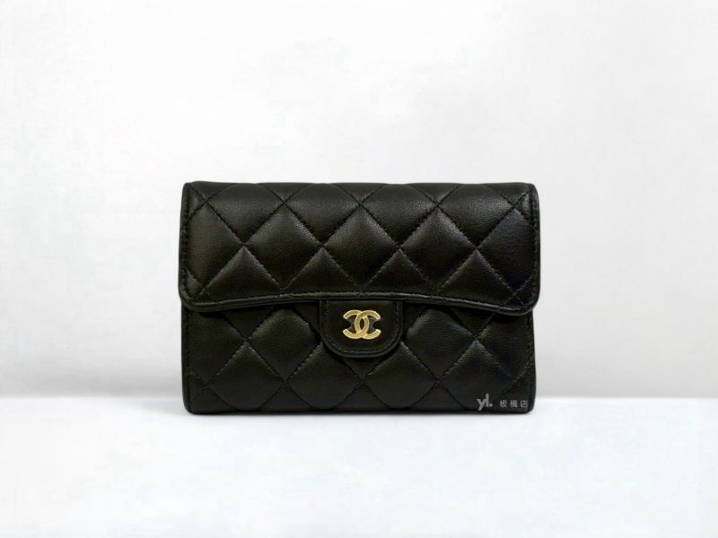 S5067 CHANEL皮夾 黑羊皮金釦三折中夾AP0232 (板橋府中店) A12841 CHANEL皮夾 白色荔枝牛皮淡金釦L拉錢包AP3999 (台北大...