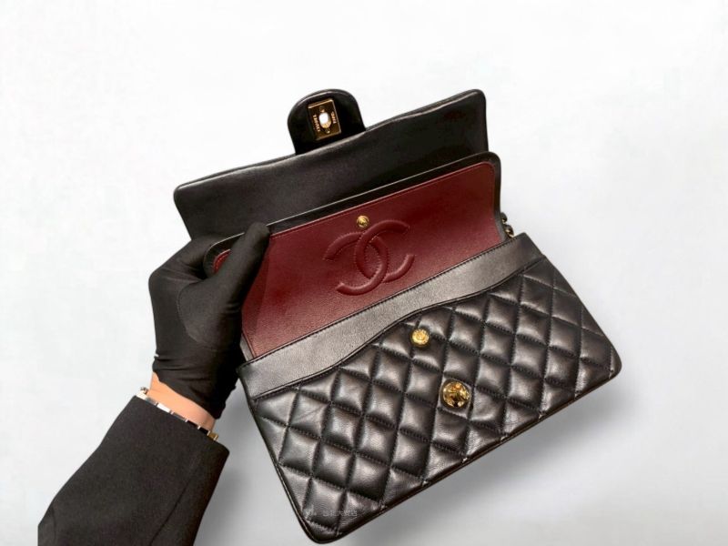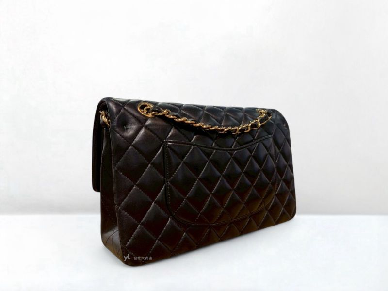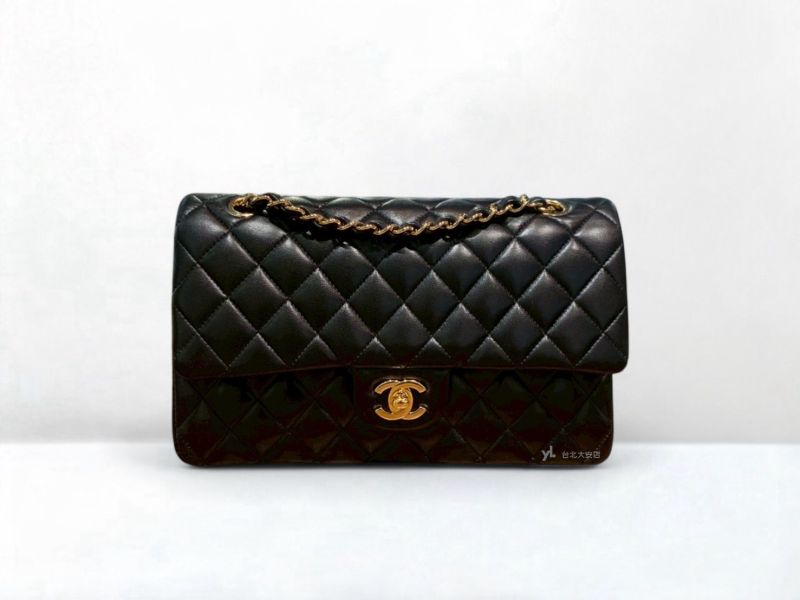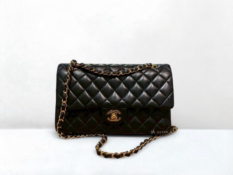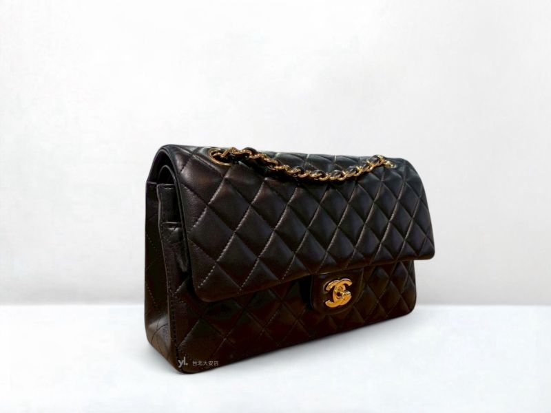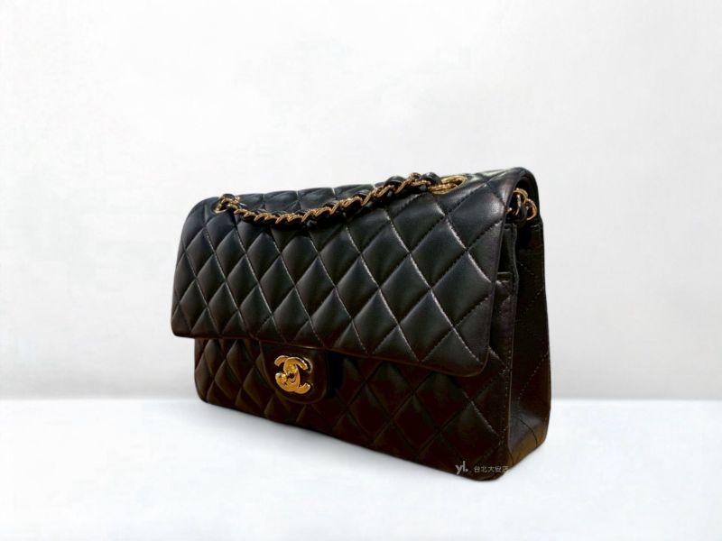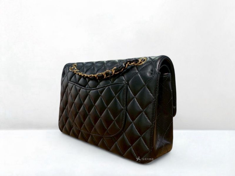 B6257 CHANEL包包 COCO25黑色羊皮金釦下蓋包 (台北大安店)