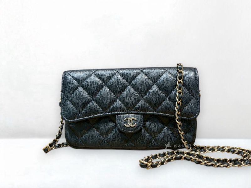 A12456 CHANEL包包 黑色荔枝皮金釦二合一手機鏈包AP2096 (台... S5280 LV零錢包 原花一字零錢包&手機掛繩M26898 (板橋府...