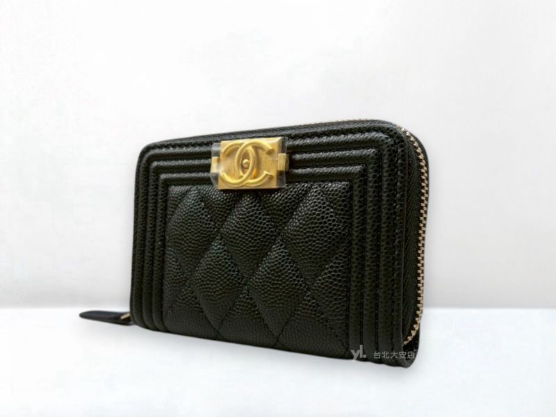 路徑: 首頁 / 商品 / BRAND / Chanel / B6353 CHANEL零錢包 BOY 黑色荔枝牛皮金釦拉鍊零錢包A80602 (台北大安店)...