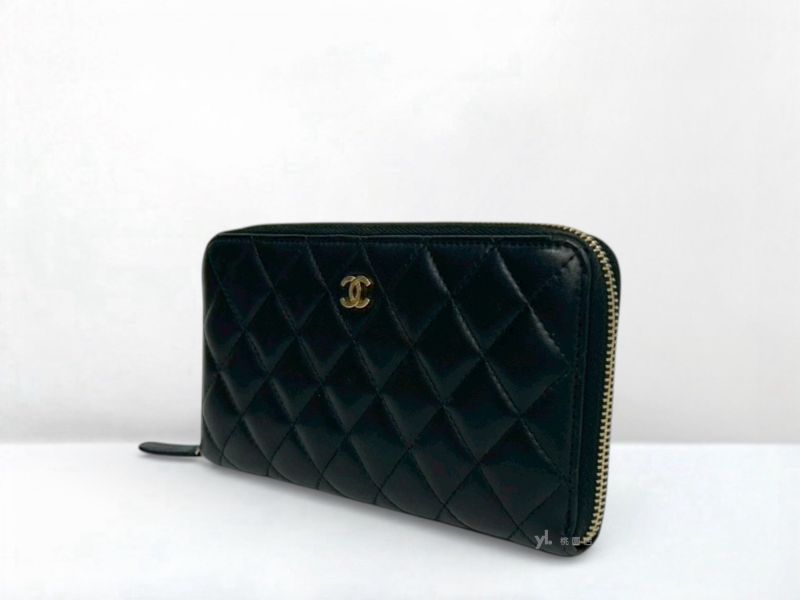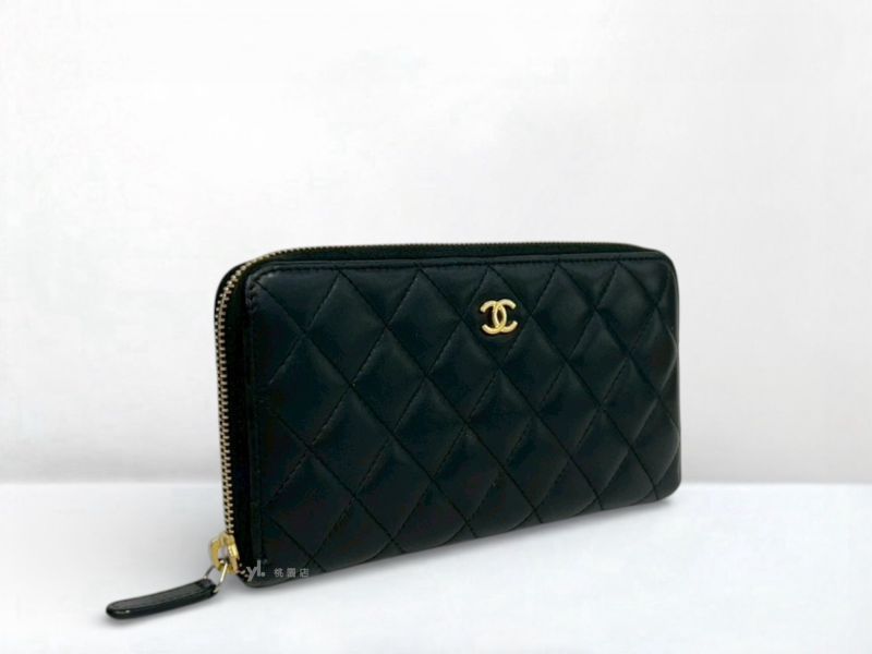 C3213 CHANEL皮夾 黑金羊皮8卡ㄇ拉長夾A50097 (桃園店)