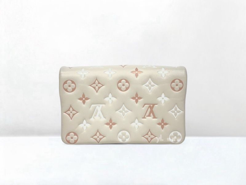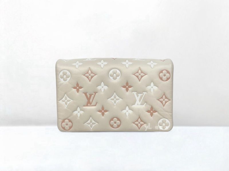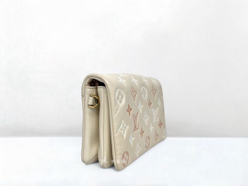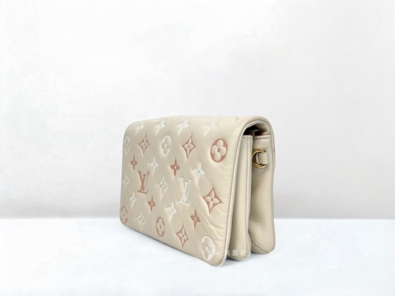 路徑: 首頁 / 商品 / BRAND / LV / C3314 LV包包 米白拚粉Logo壓紋羊皮Coussin下蓋鍊包M82289 (桃園店)...