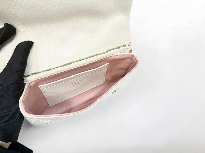 C3314 LV包包 米白拚粉Logo壓紋羊皮Coussin下蓋鍊包M82289 (桃園店)