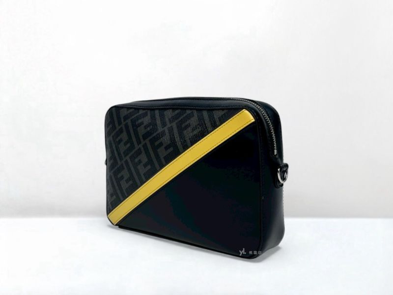 • C3498 FENDI包包 黑灰雙F拚黃色牛皮Diagonal銀釦相機包7M0286 (桃園店)