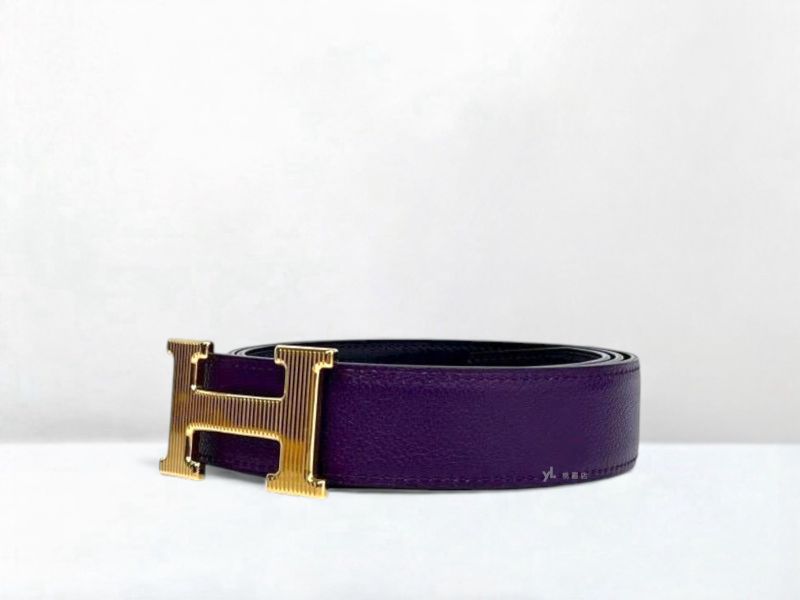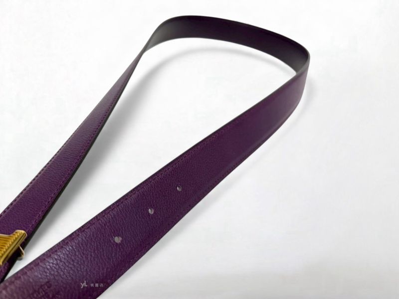 C3422 HERMES皮帶 59葡萄紫Togo皮內拚Box皮H Strie金釦皮帶 (桃園店)