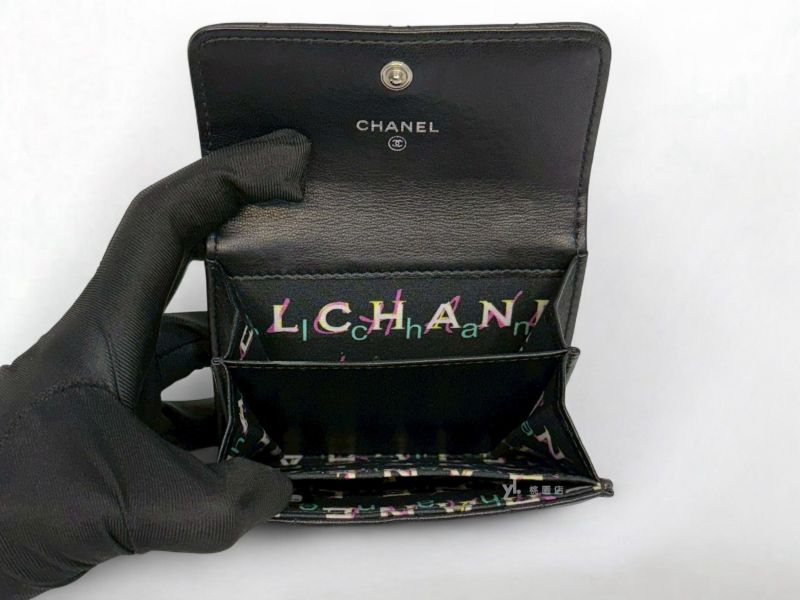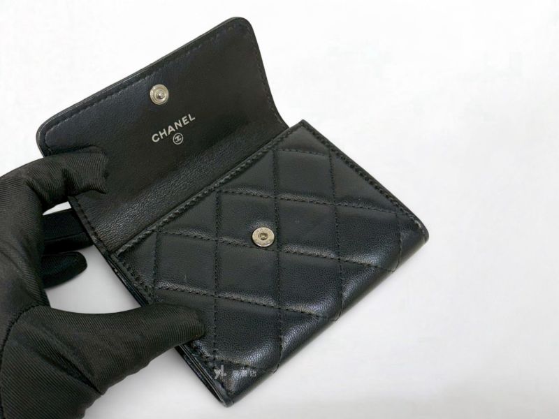 路徑: 首頁 / 商品 / BRAND / Chanel / C3448 CHANEL卡包 黑色羊皮銀釦大雙C logo雙層下蓋卡包 (桃園店)...