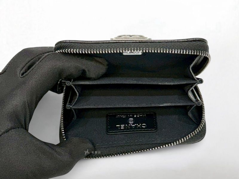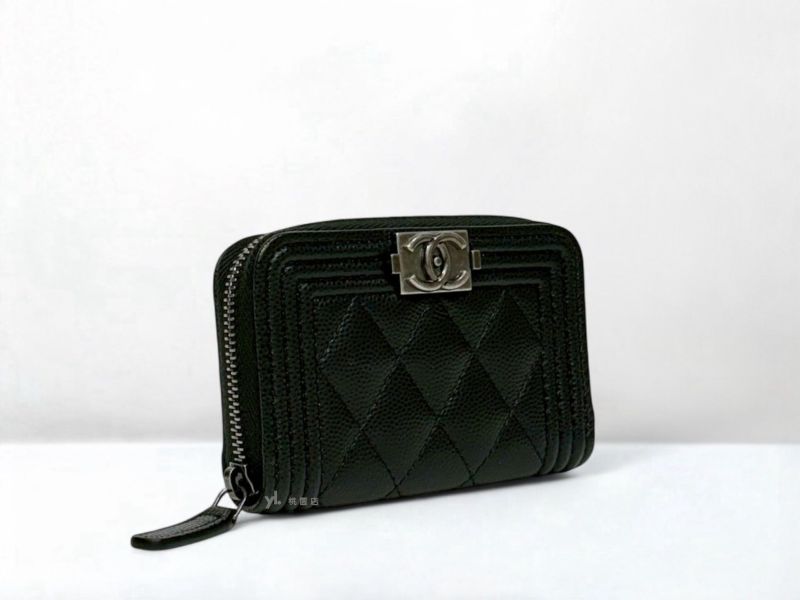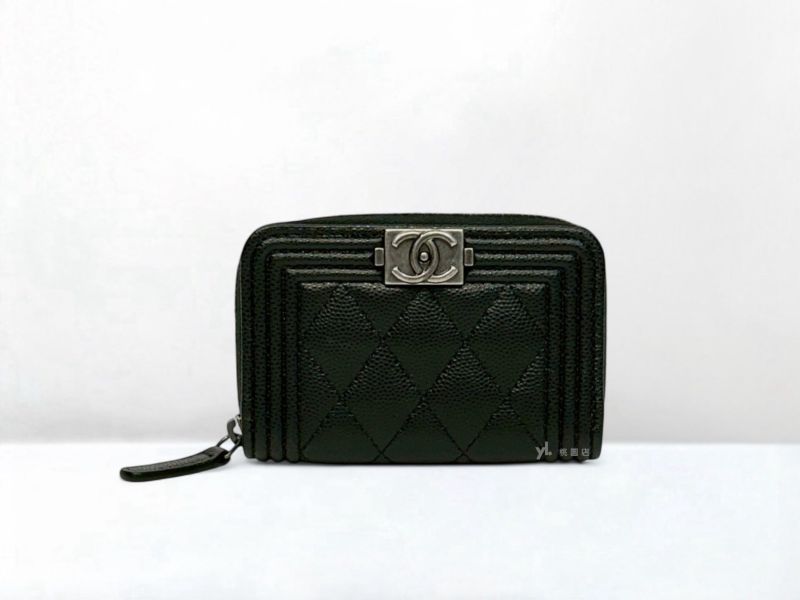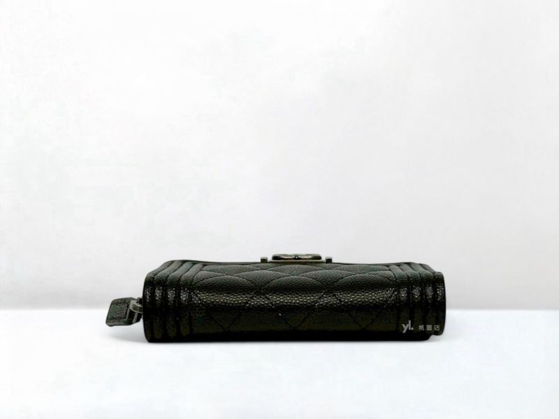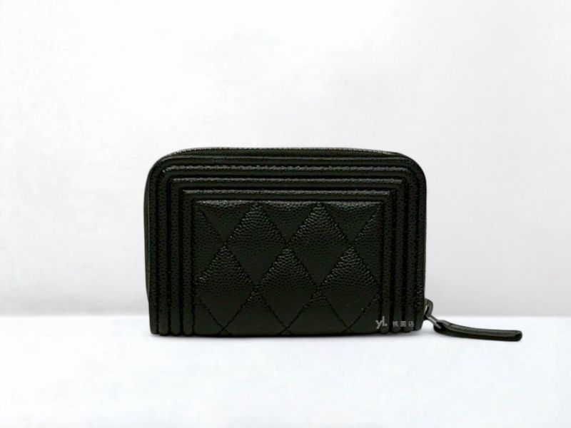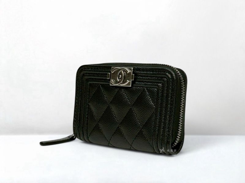 C3449 CHANEL皮夾 黑銀荔枝牛皮BOY拉鍊零錢包A80602 (桃園店)