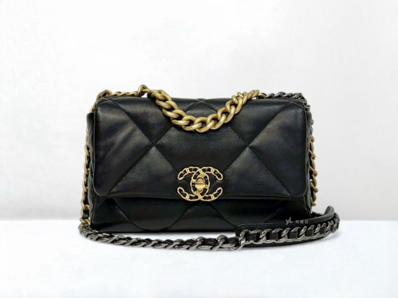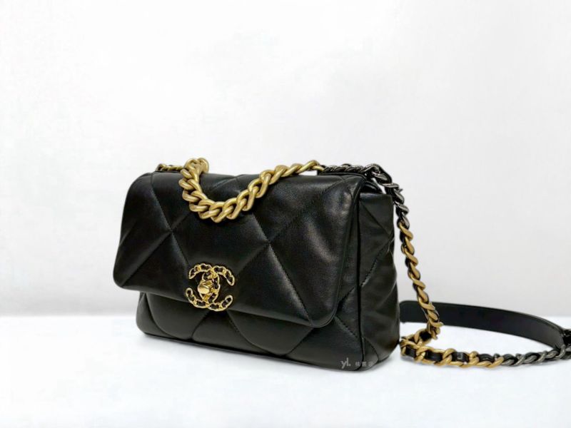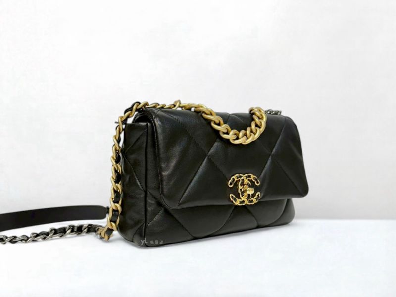 C3452 CHANEL包包 黑色羊皮金釦19系列26CM/AS1160 (桃園店)