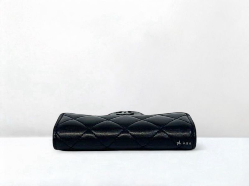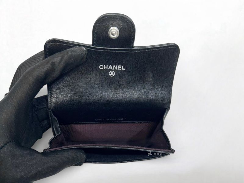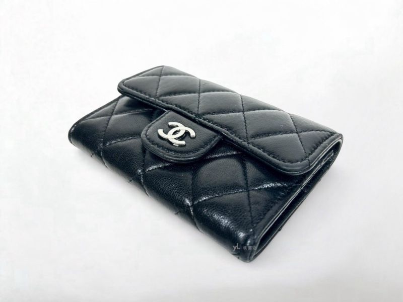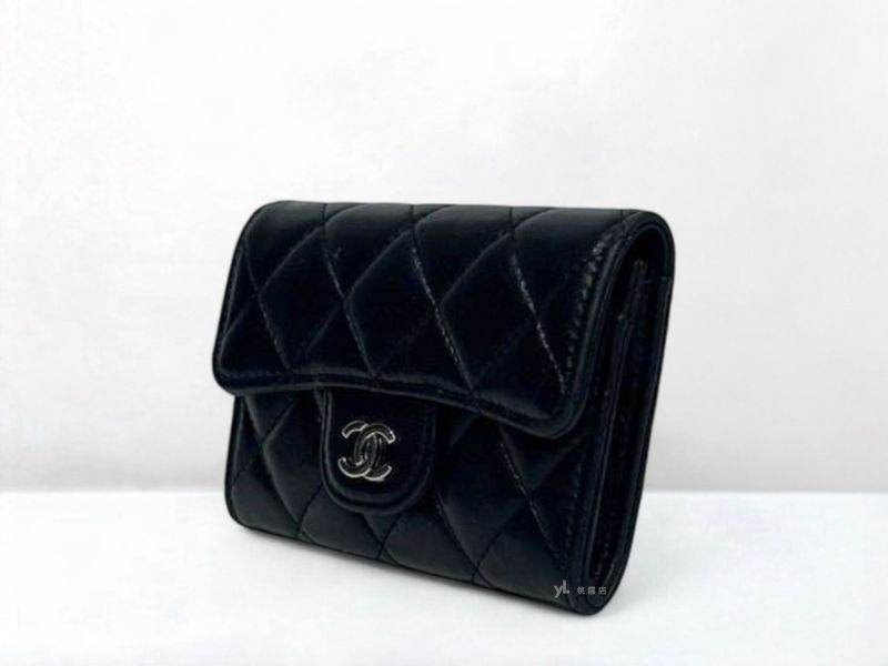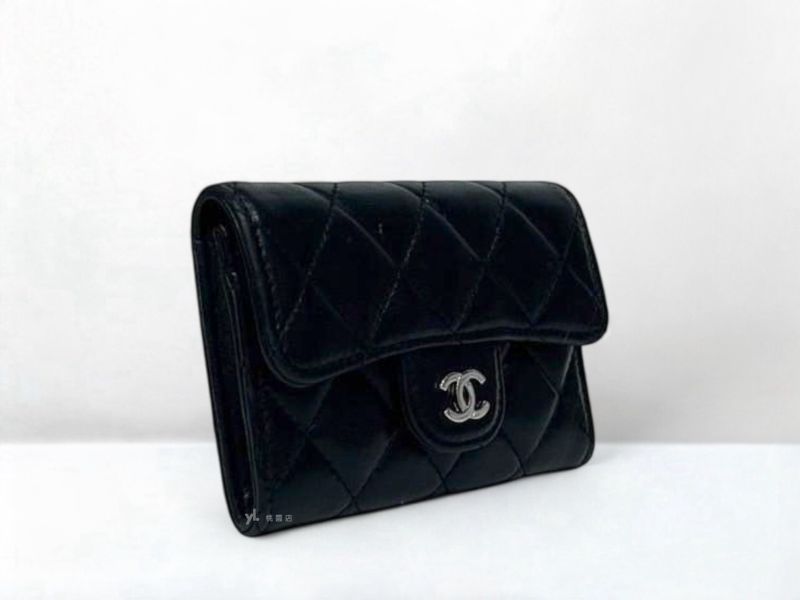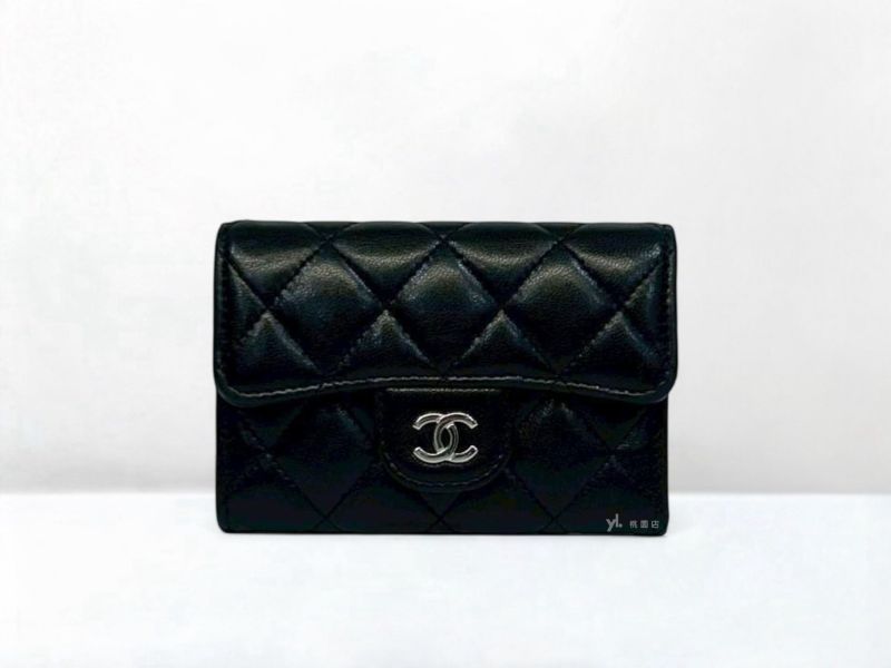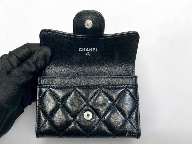 C3485 CHANEL卡包 黑銀羊皮下蓋單層卡包A80799 (桃園店)