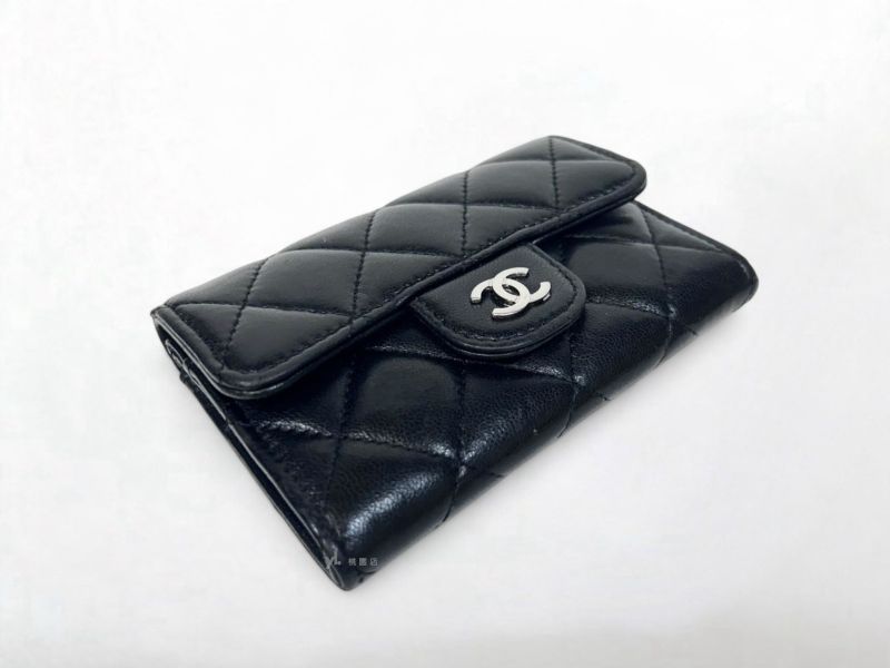 路徑: 首頁 / 商品 / BRAND / Chanel / C3485 CHANEL卡包 黑銀羊皮下蓋單層卡包A80799 (桃園店)