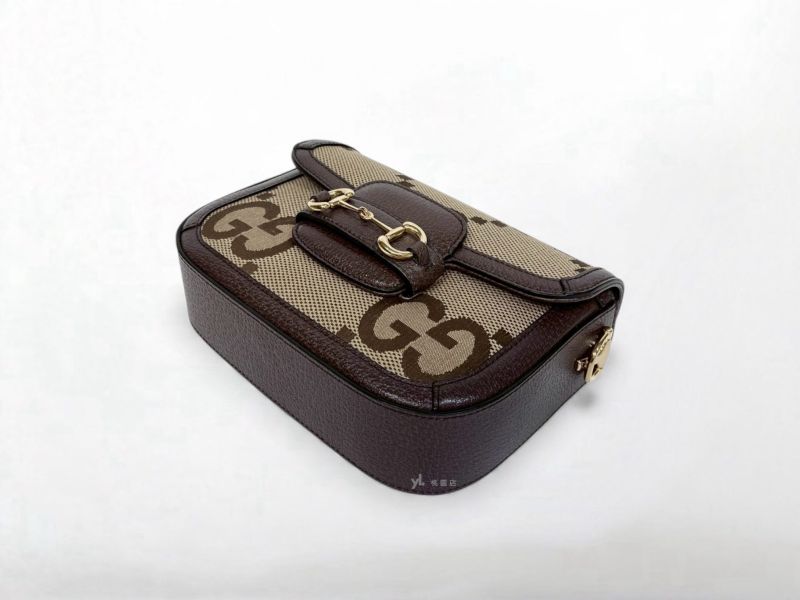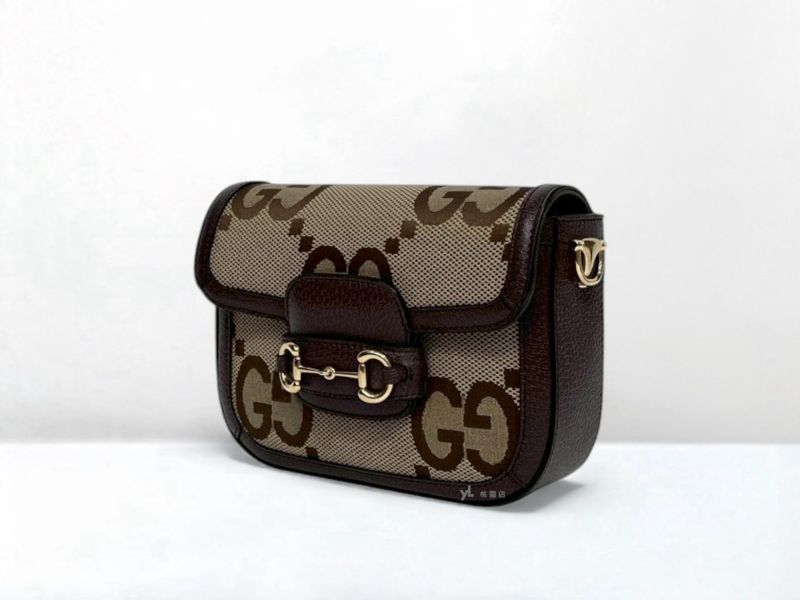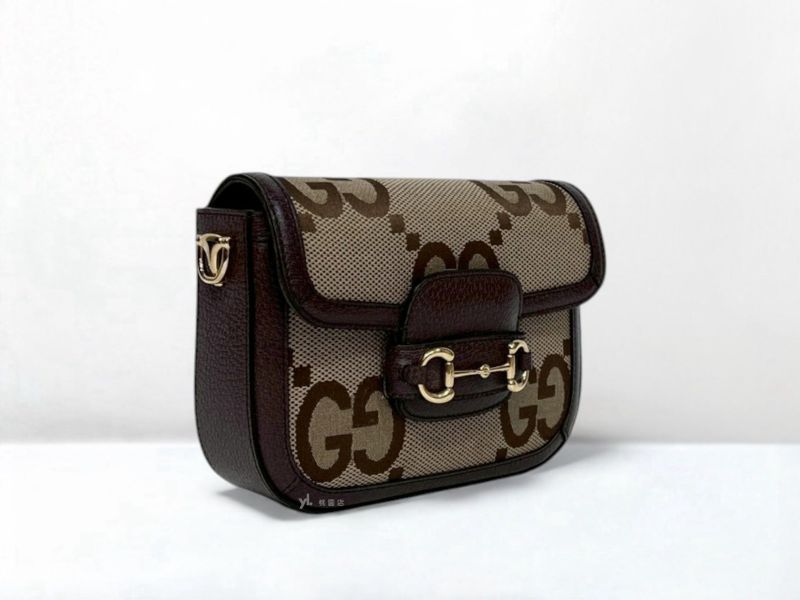 C3499 GUCCI包包 帆布拚烏木色牛皮Horsebit 1955小號側背包658574 (桃園店)