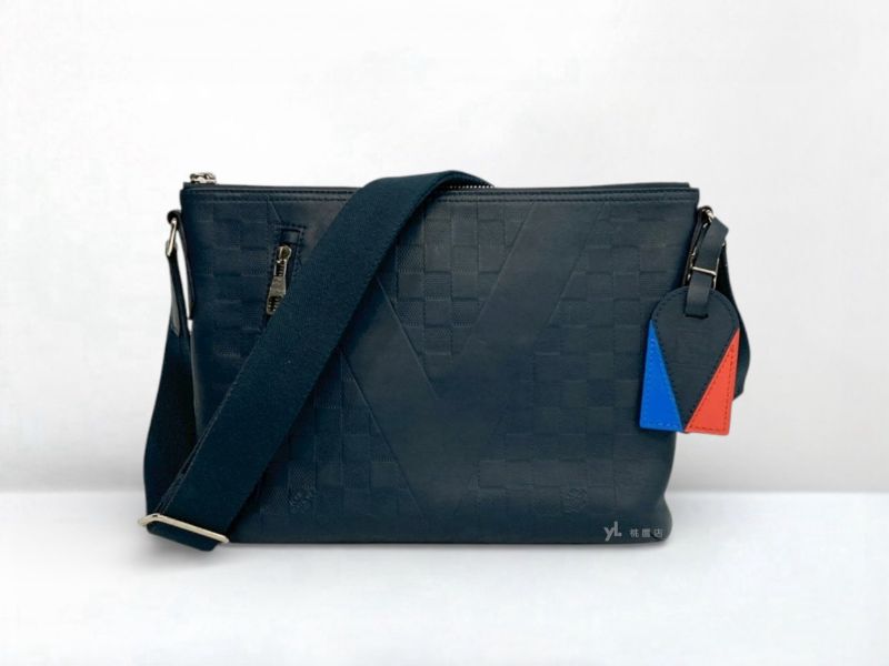 • V3412 LV包包 黑牛皮壓紋Alpha霧黑釦前口袋ㄇ拉肩斜背包M82544 (台南店)
