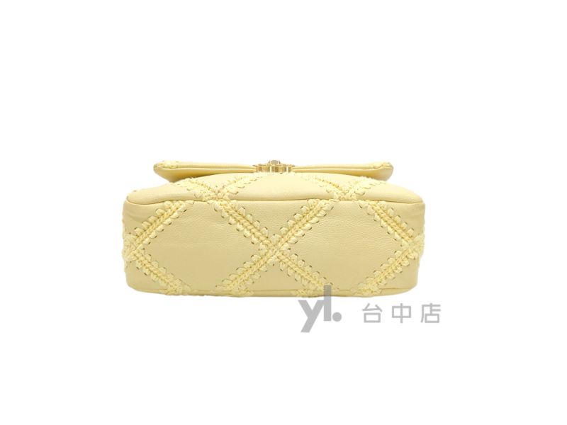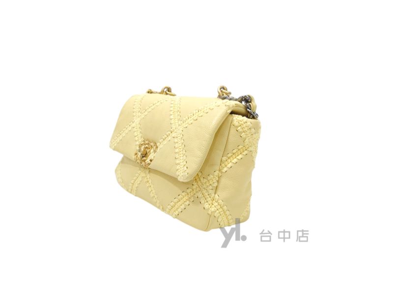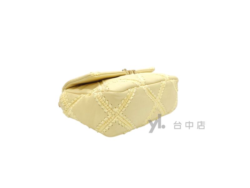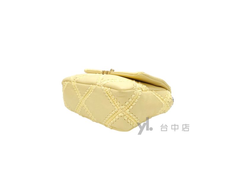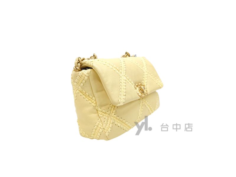路徑: 首頁 / 商品 / BRAND / Chanel / I0224 Chanel包包 粉黃色牛皮粗縫線霧金釦19小號AS1160 (台中店)...