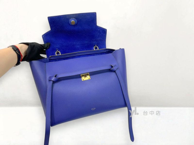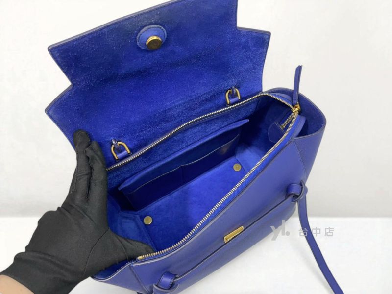 I0248 Celine包包 深藍色牛皮belt bag大款鯰魚包手提肩背包 (台中店)