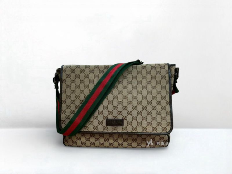 • A12401 GUCCI包包 經典緹花皮飾邊下蓋斜背包/449171 (台北大安店)