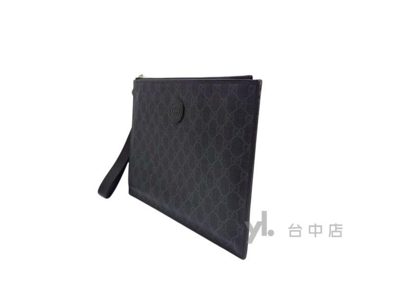 路徑: 首頁 / 商品 / BRAND / Gucci / I1072 Gucci包包 黑灰PVC Interlocking雙G一字拉手拿包 (台中店)...