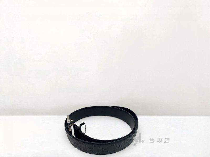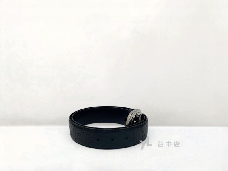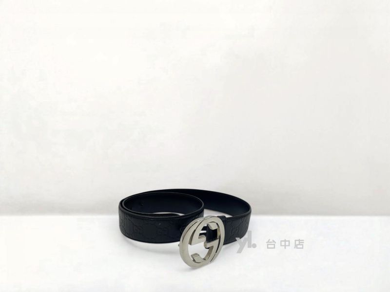 I1323 Gucci皮帶 黑牛皮壓紋銀釦G釦頭皮帶 (台中店)