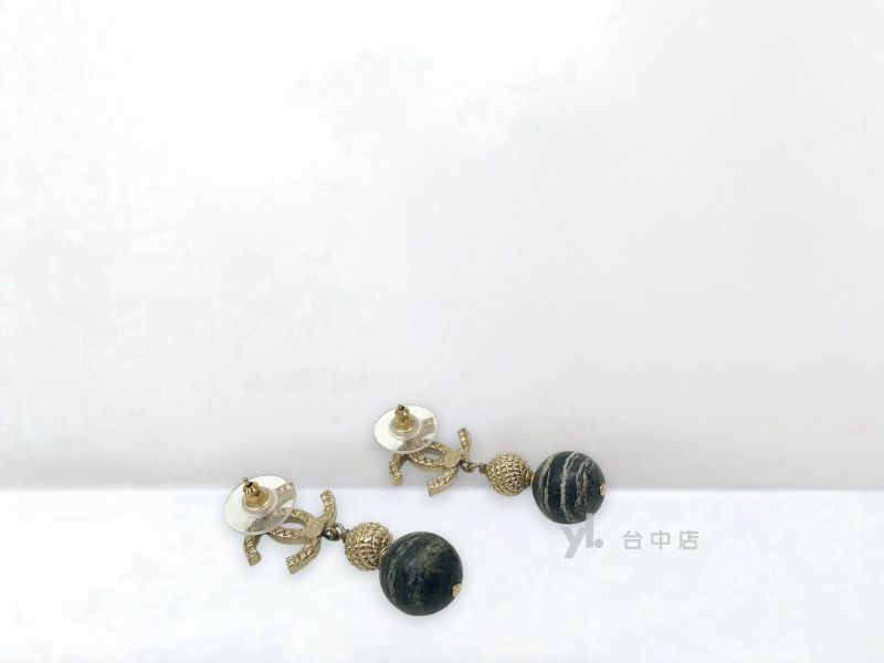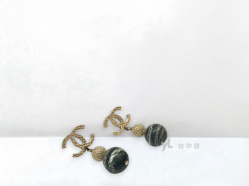 I1380 Chanel耳環 霧金菱格雙C珠垂吊耳環 (台中店)