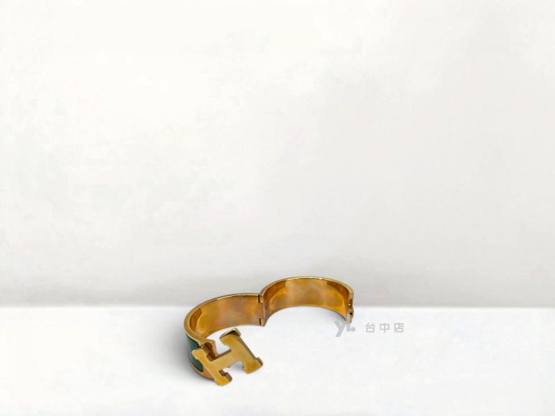 路徑: 首頁 / 商品 / BRAND / Hermes / I1454 Hermes手環 綠色琺瑯金釦Clic Clac H手環 (台中店)