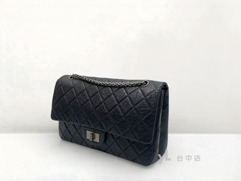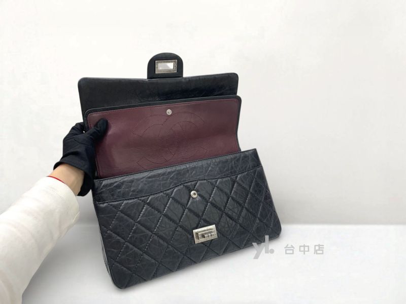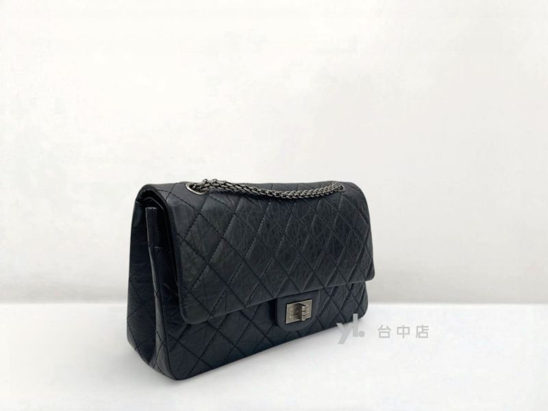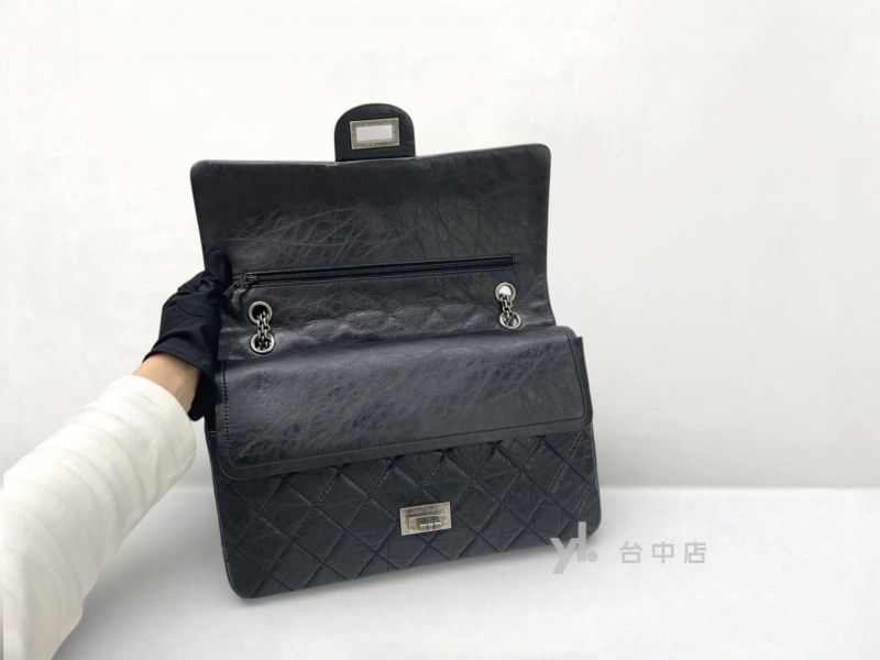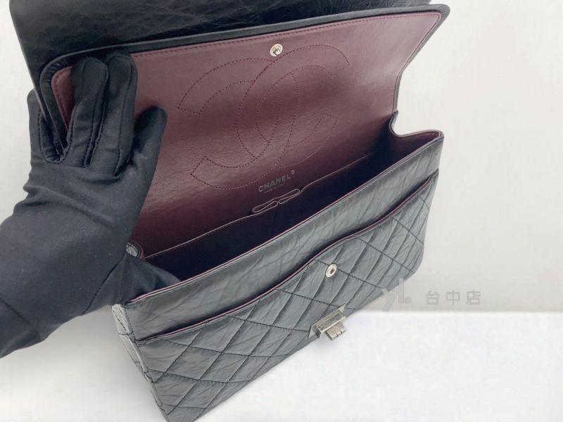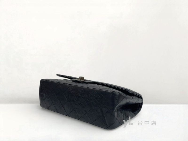 I1493 Chanel包包 黑色復刻牛皮霧銀扣Maxi2.55肩背斜背口蓋包 A37590 (台中店)