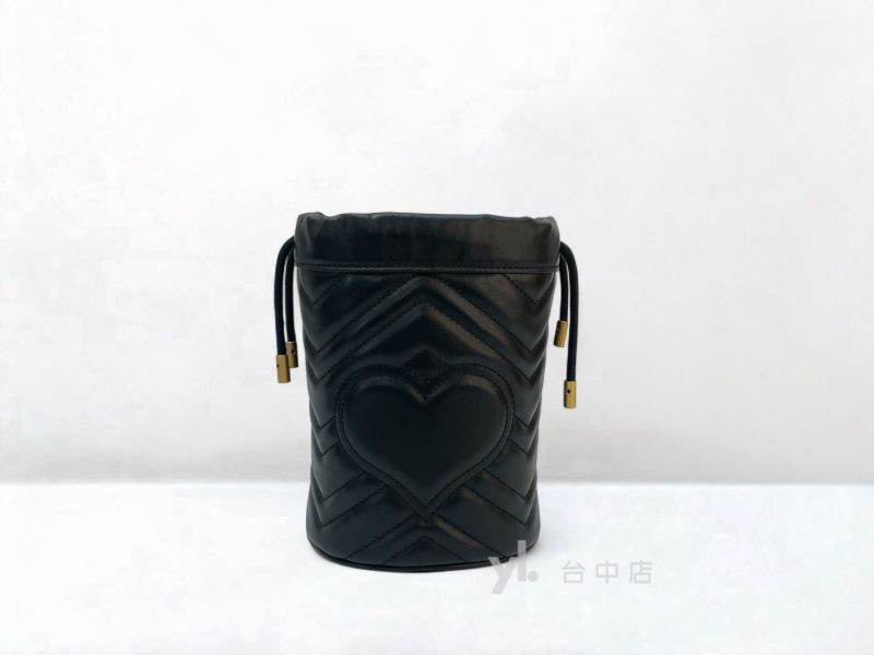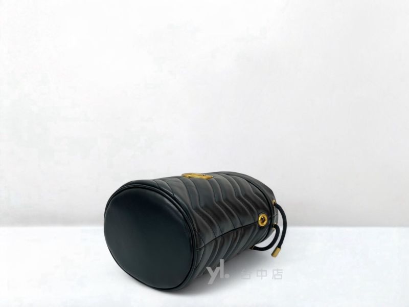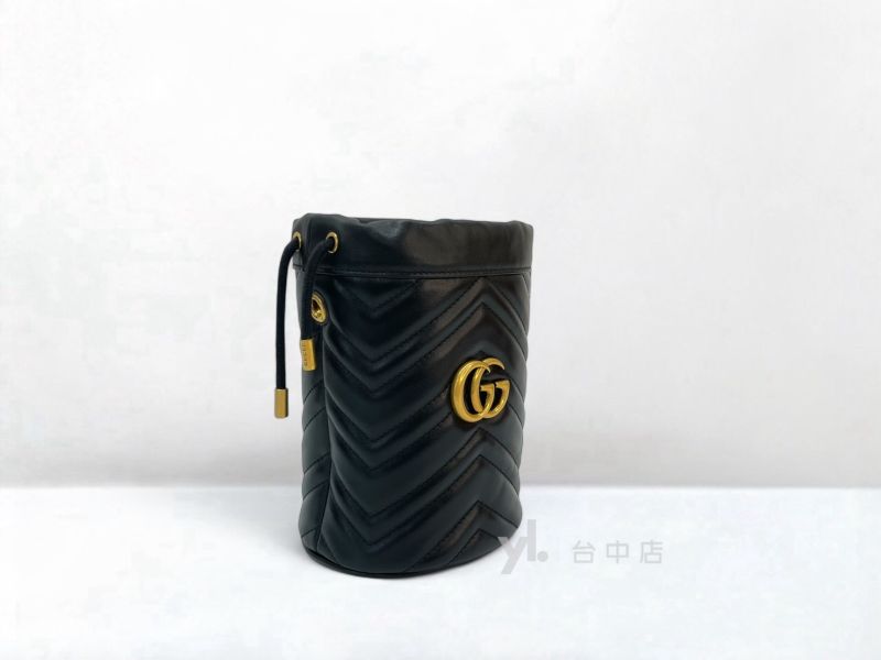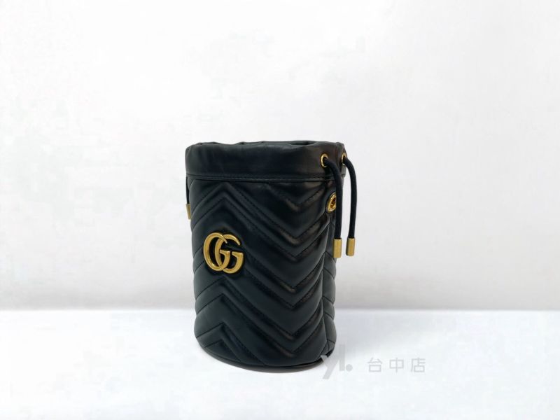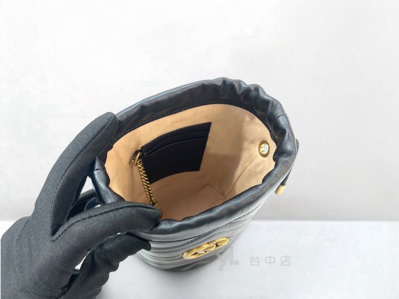 I1564 Gucci包包 黑牛皮霧金釦Marmont Mini Bucket Bag斜背水桶包 575163 (台中店)