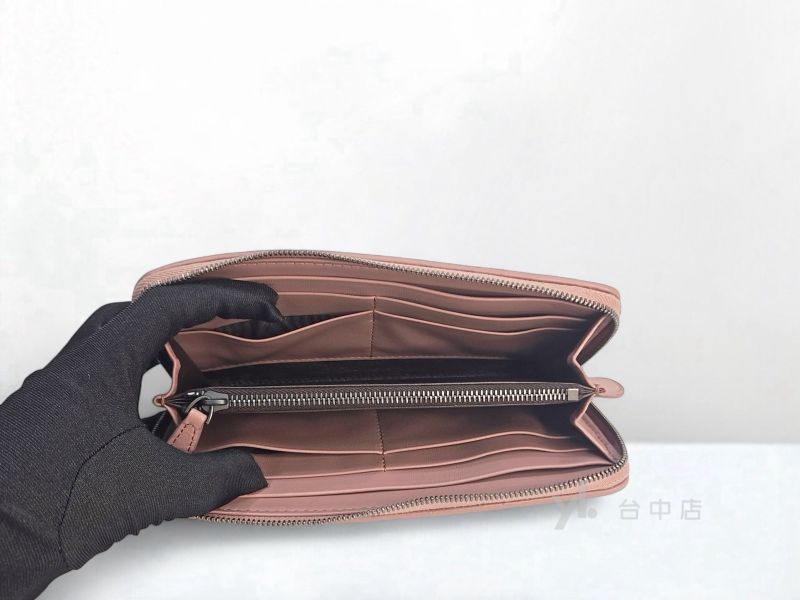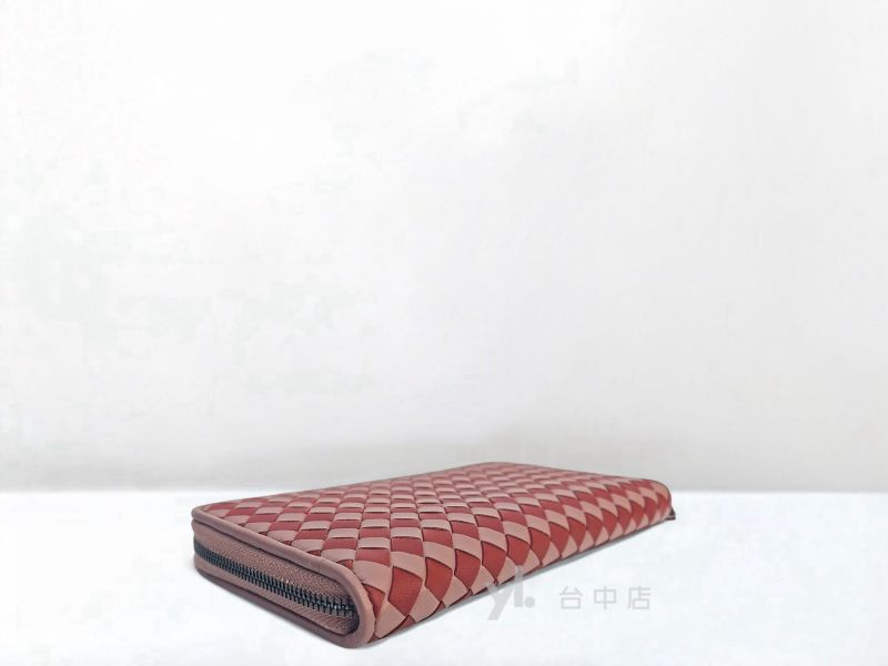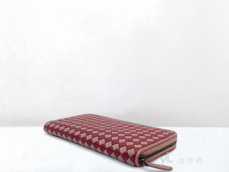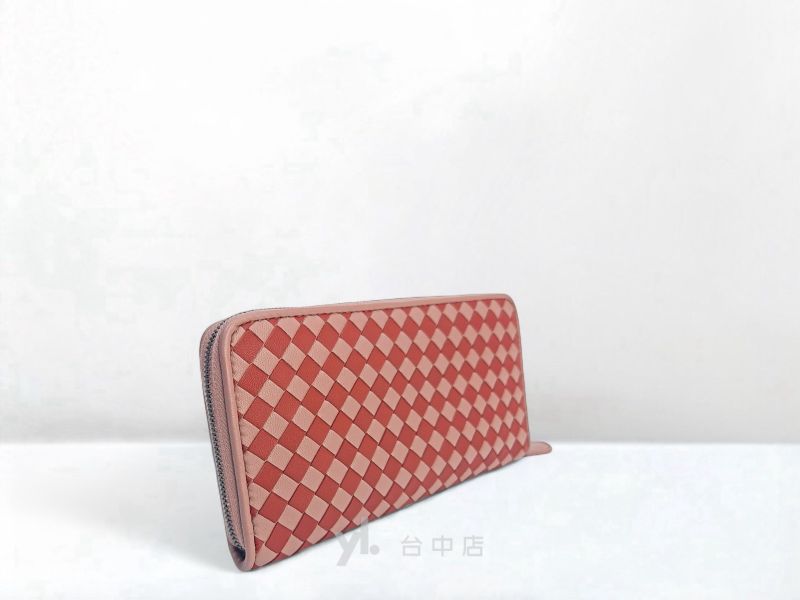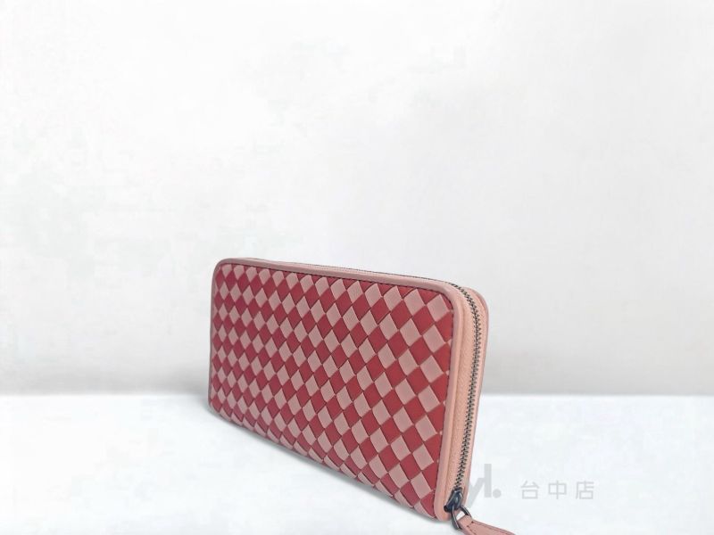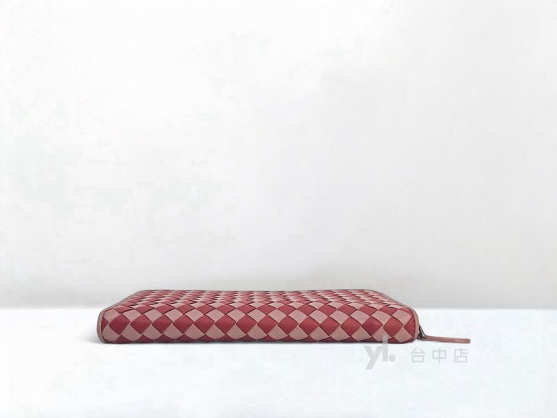 I1577 BV長夾 紅拼粉羊皮霧黑釦12卡編織ㄇ拉長夾 (台中店)