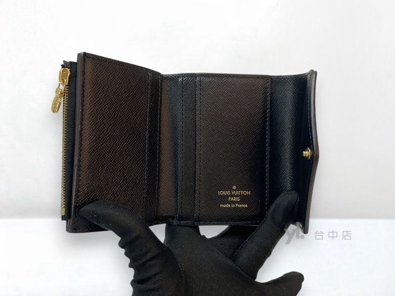 I1588 LV皮夾 雙色原花金釦Zoe 4卡三折短夾 M80725 (台中店)