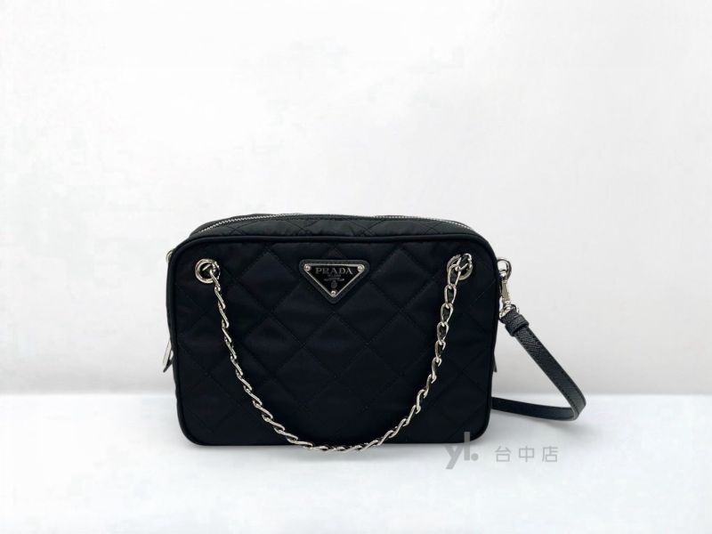 I1815 Prada包包 黑尼龍菱格三角牌銀釦ㄇ拉手提斜背方包1BH910...