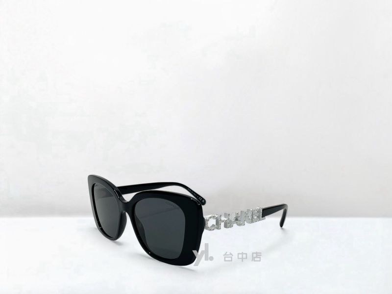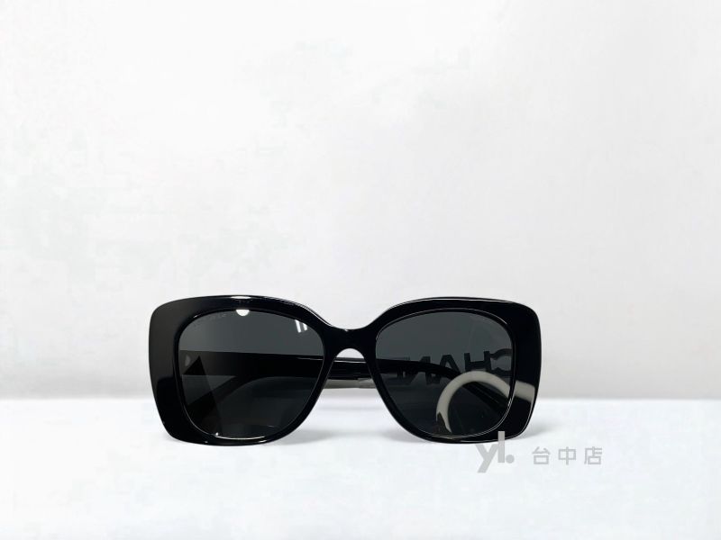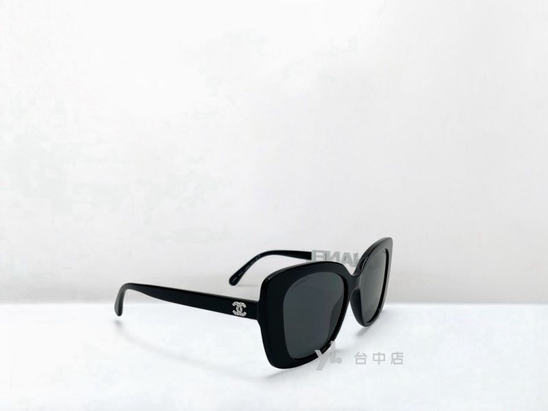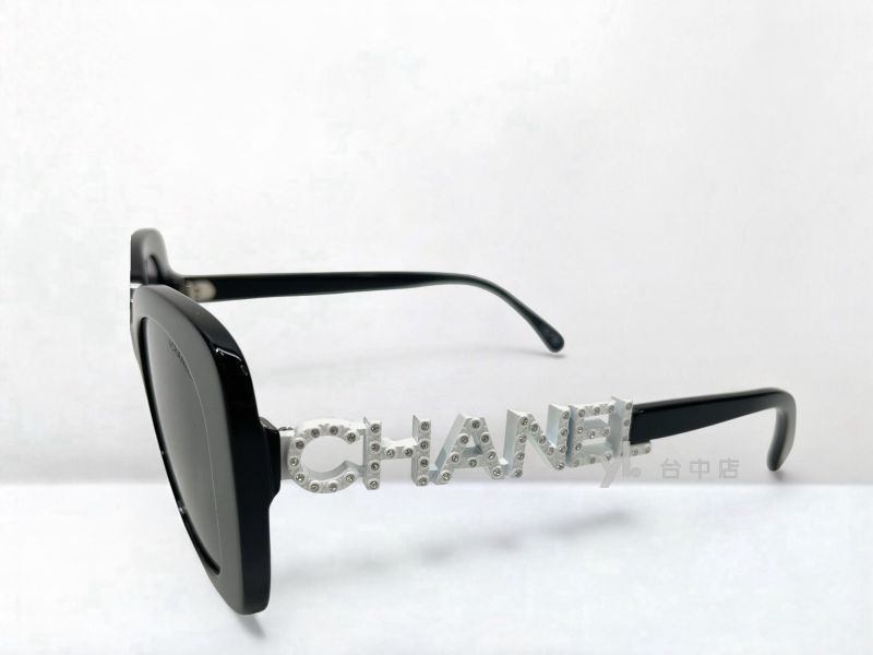 I1652 Chanel眼鏡 黑框白色鏤空水鑽字母Logo方形太陽眼鏡5422B C.1026/34 (台中店)